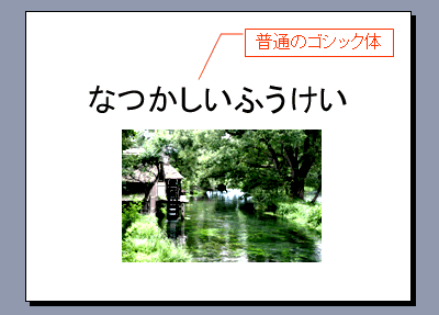 しかし、発表用PCにフォントがインストールされていないと以下のように通常のフォントで表示されてしまうのです。